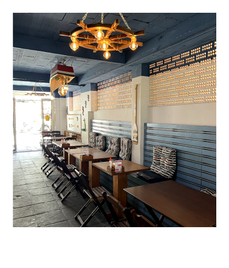 Localizado próximo à praia da Boca da Barra, um dos destinos mais tranquilos e familiares de Rio das Ostras, nosso restaurante possui um tema náutico encantador, com elementos como uma canoa no teto e um timão, proporcionando um ambiente acolhedor e único.
